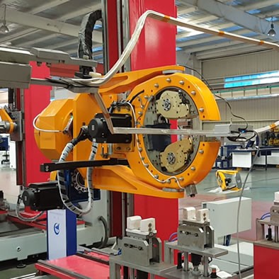 非接觸式3D示教系統(tǒng)為我公司最新研發(fā)。由一套尺寸僅為130*75*35mm的測量裝置組成,安裝于包帶機(jī)包帶頭上,配套程序內(nèi)置于包帶機(jī)系統(tǒng)內(nèi)。適用于我司不同型號(hào)的CNC及機(jī)器人包帶機(jī)使用。此示教系統(tǒng)的導(dǎo)入,結(jié)束了人工示教操作的歷史,從而改善了線示教精度的穩(wěn)定性,因此提高了包帶品質(zhì)。