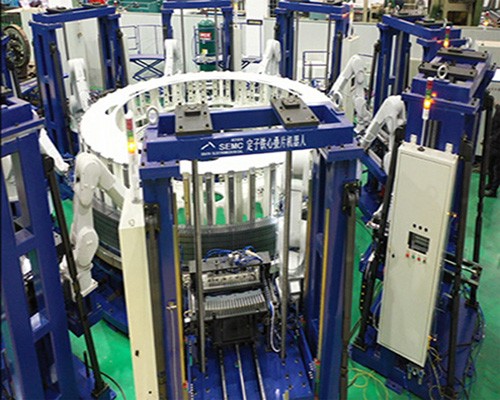 定子鐵心全自動疊片機(jī),是我司應(yīng)中車電機(jī)客戶需求 潛心共同研發(fā)出的世界首臺適用于大型風(fēng)電行業(yè)的 電機(jī)疊片非標(biāo)設(shè)備。它將電機(jī)定子線圈疊片過程中的沖片搬運(yùn)、沖片分片、沖片疊裝、沖片槽樣棒整形定位的所有疊片工藝流程,均通過作業(yè)設(shè)備操作自動完成,實(shí)現(xiàn)電機(jī)定子線圈疊片過程的自動化作業(yè)。不僅生產(chǎn)效率高,同時節(jié)省大量的人力,降低生產(chǎn)成本,保障員工職業(yè)健康。大幅提高疊片質(zhì)量的同時,通過后續(xù)對自動供料、自動吊裝等方面的研發(fā)及技術(shù)改進(jìn),能夠協(xié)助電機(jī)制造廠商不斷向著全自動化生產(chǎn)線的方向發(fā)展。